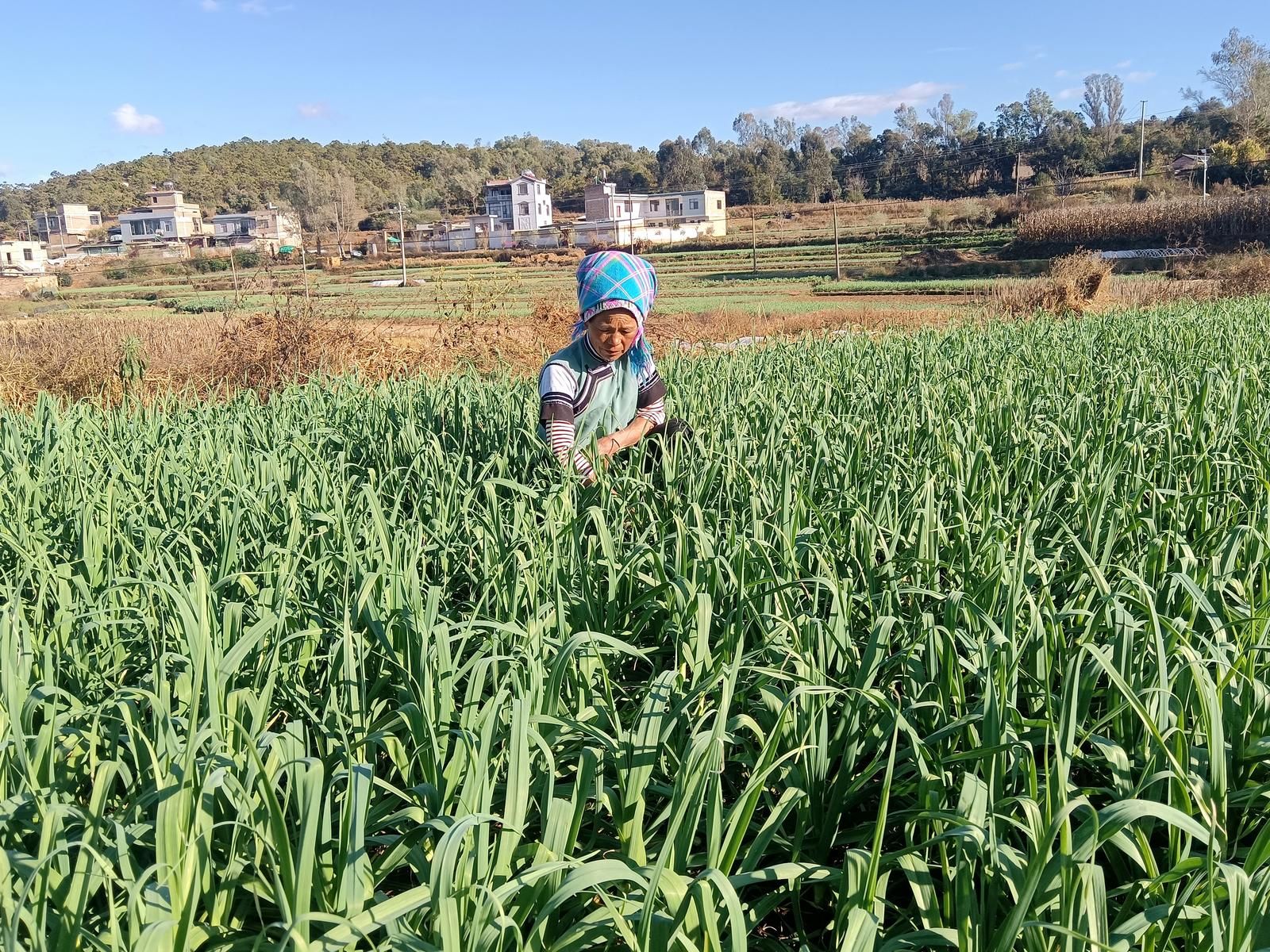 人勤春来早。进入深冬,文山市秉烈乡小平坝自然村的山野却依然绿意葱茏,坝塘边连片的蒜苗顺着梯田层层铺展。“快过年那几天,蒜苗卖到了30块钱一斤。”回想去年蒜苗被抢购的喜人情景,望着眼前粗壮挺拔的蒜苗,村民赵四妹对今年的好收成满怀信心。