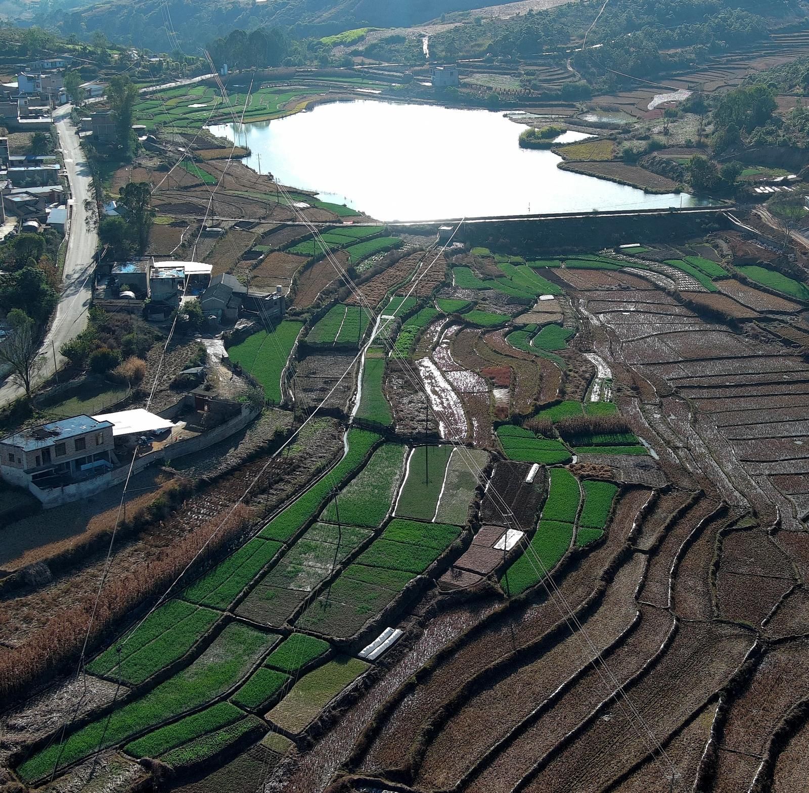此后,小平坝村的水利改善从未止步。任村组干部近20年的罗俊国清楚记得,80年代实行包产到户后,村里陆续修建了灌溉沟渠;2008年对淤泥堵塞的几座坝塘进行疏通和除险加固;2009年修通自来水;2023年扩建成库容2万立方米的“云洞”小坝塘;2024年实施饮水管网升级,自来水管从容易“跑冒滴漏”的胶管换成结实的钢管;今年11月起,涵盖机耕路、灌溉沟渠等配套设施的7000余亩高标准农田建设项目有序推进……回想天不亮就排队挑水的日子,看着白花花的自来水通到家门口,76岁老大爷肖应甲动情感叹:“还是共产党好呀!”许多老人还传唱着那首歌:“党领导的小平坝,水库水塘满山凹,三四月间栽旱秧,再大的干旱也不怕。”