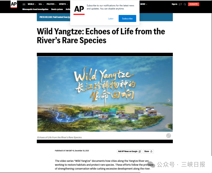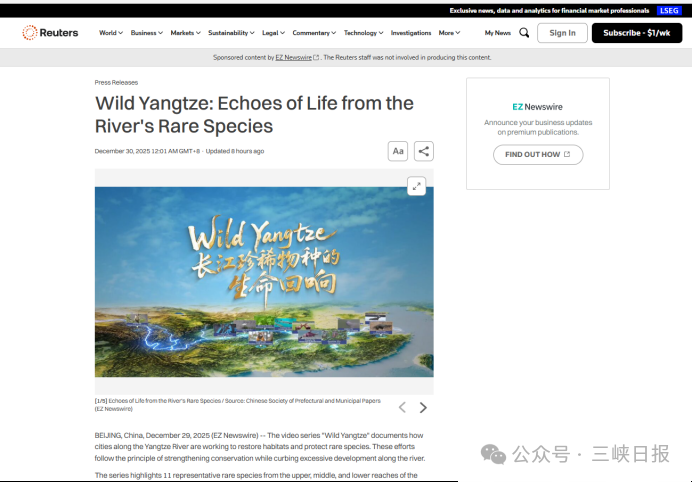 《长江珍稀物种的生命回响》不仅在国内引发广泛共鸣,更在国际舞台悄然“出圈”。