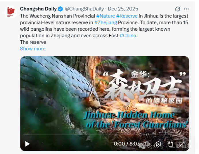 同时,纪录片通过 YouTube、X(原Twitter)、Facebook、Instagram 等社交平台触达数千万海外受众,实现跨越文化与地域的“破圈”传播。有网友写道:“看完之后很感动,其实保护动植物,就是在守护我们自己,因为我们彼此共生、相互依存。”还有网友则感叹道:“从江豚的微笑到中华鲟的洄游,每一个镜头都充满了生命的力量,非常有温度、有希望。”