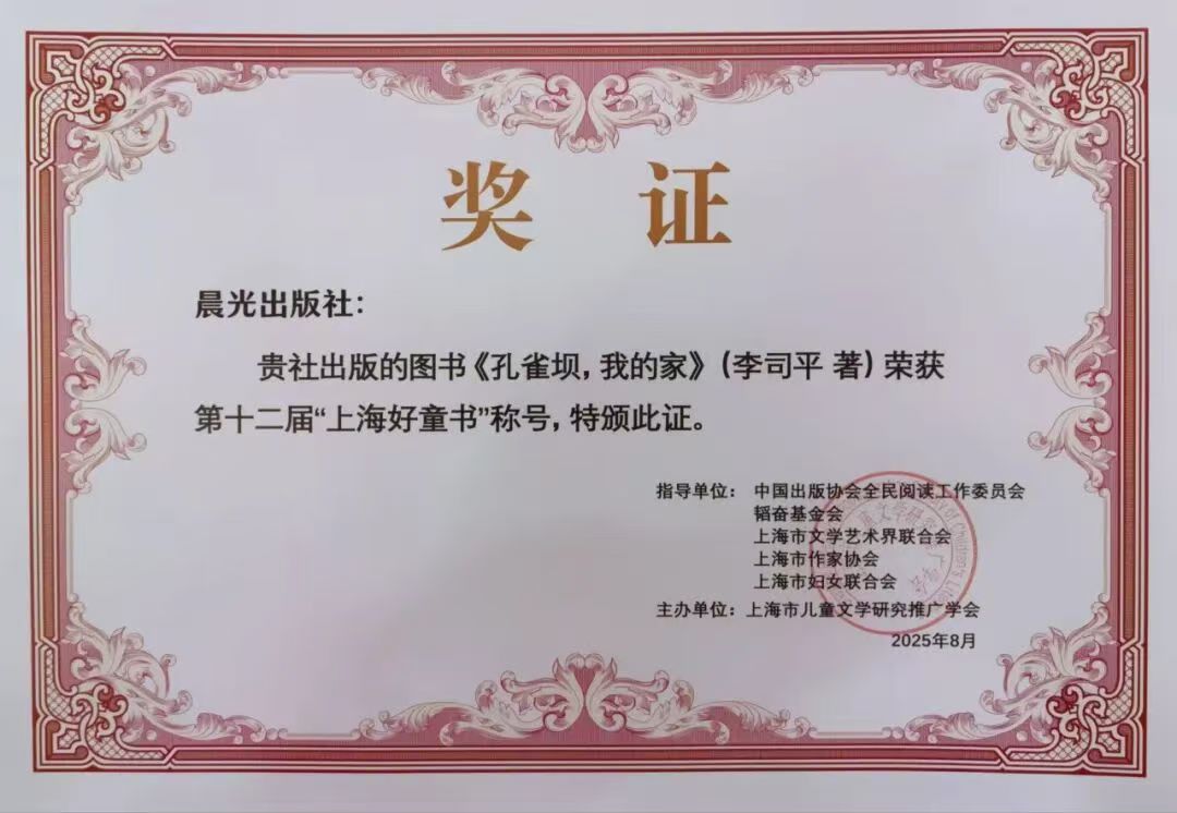 我州作家李司平的儿童文学《孔雀坝,我的家》一书,荣获2025年第十二届“上海好童书”称号。