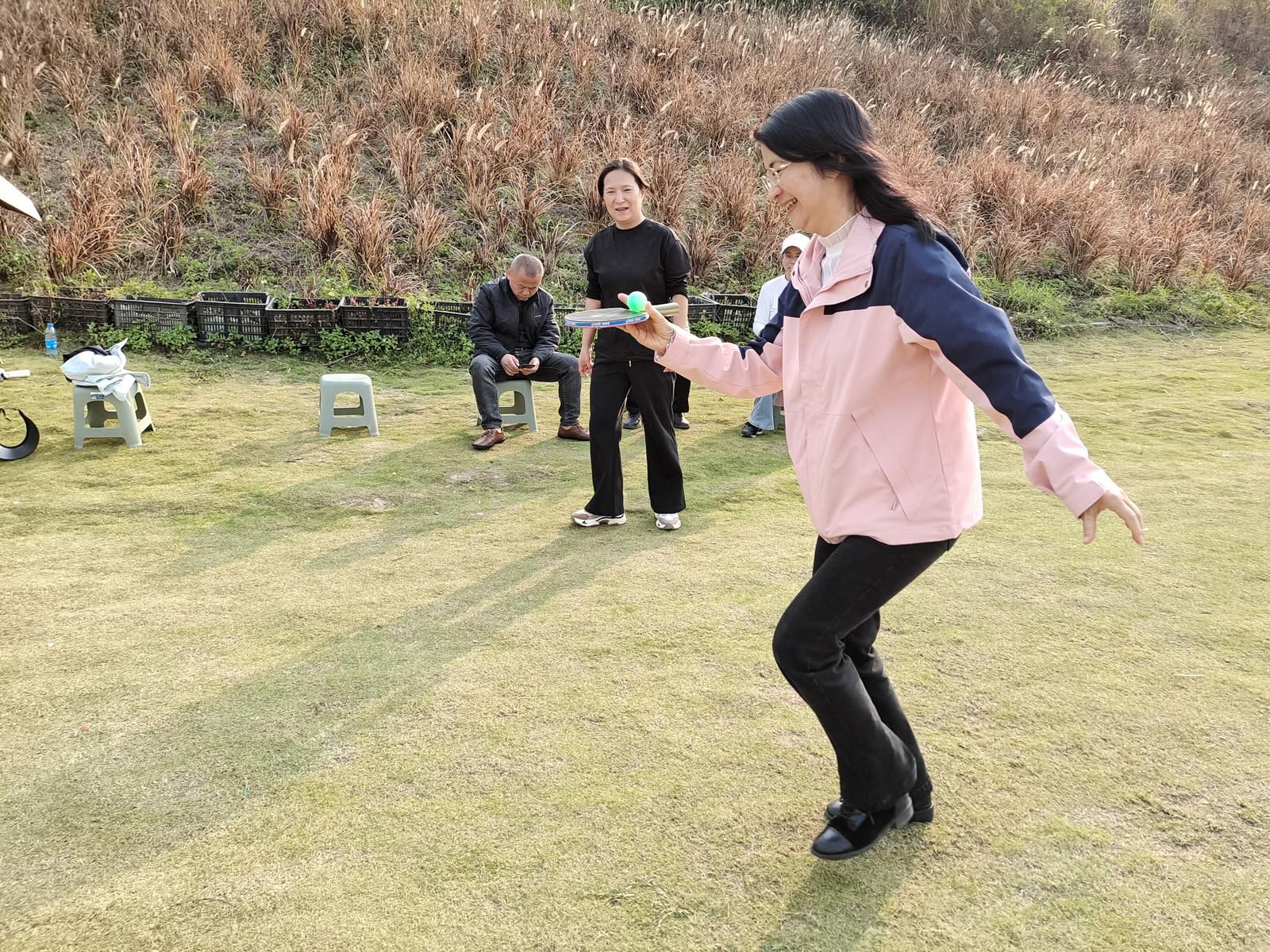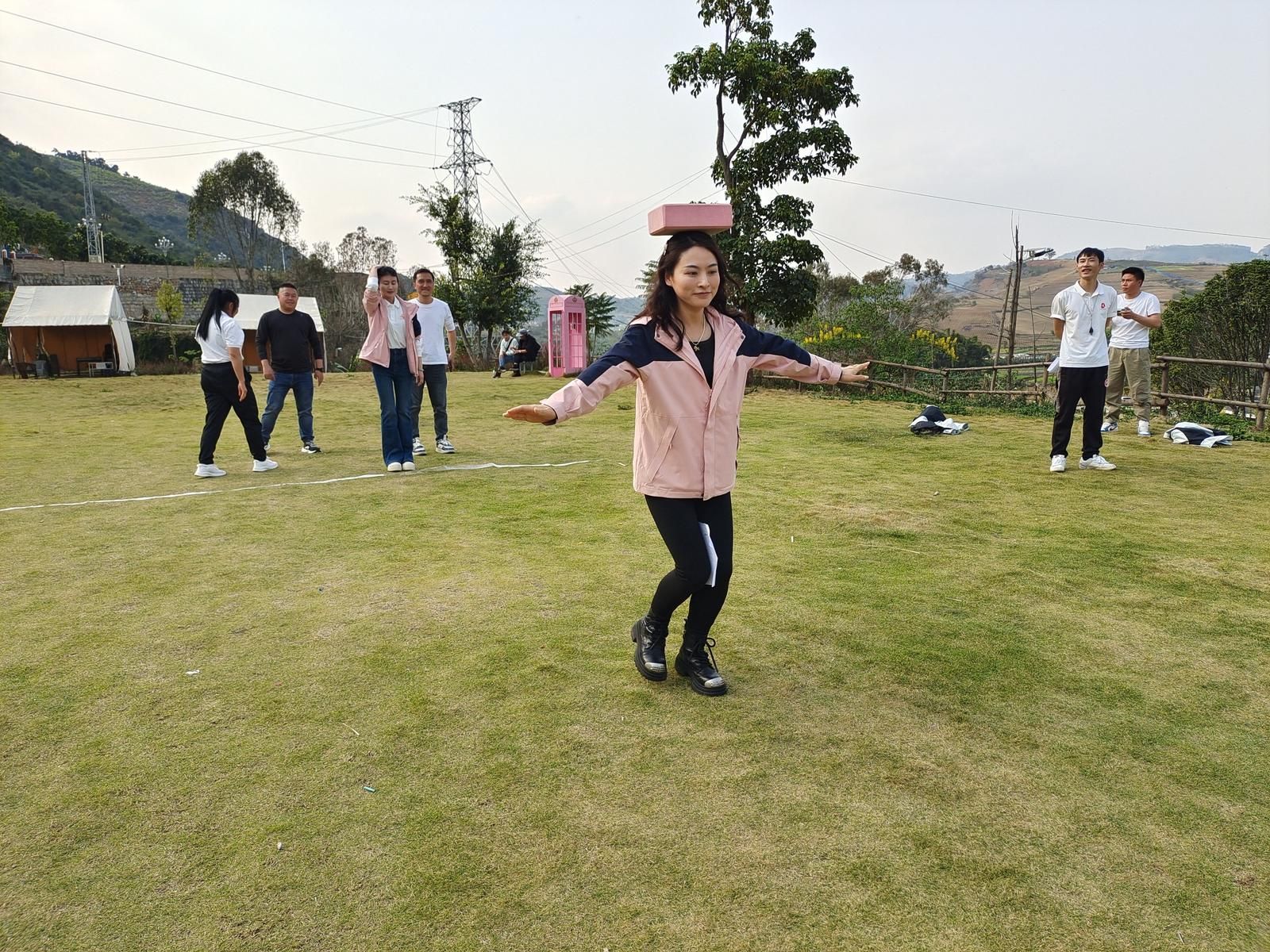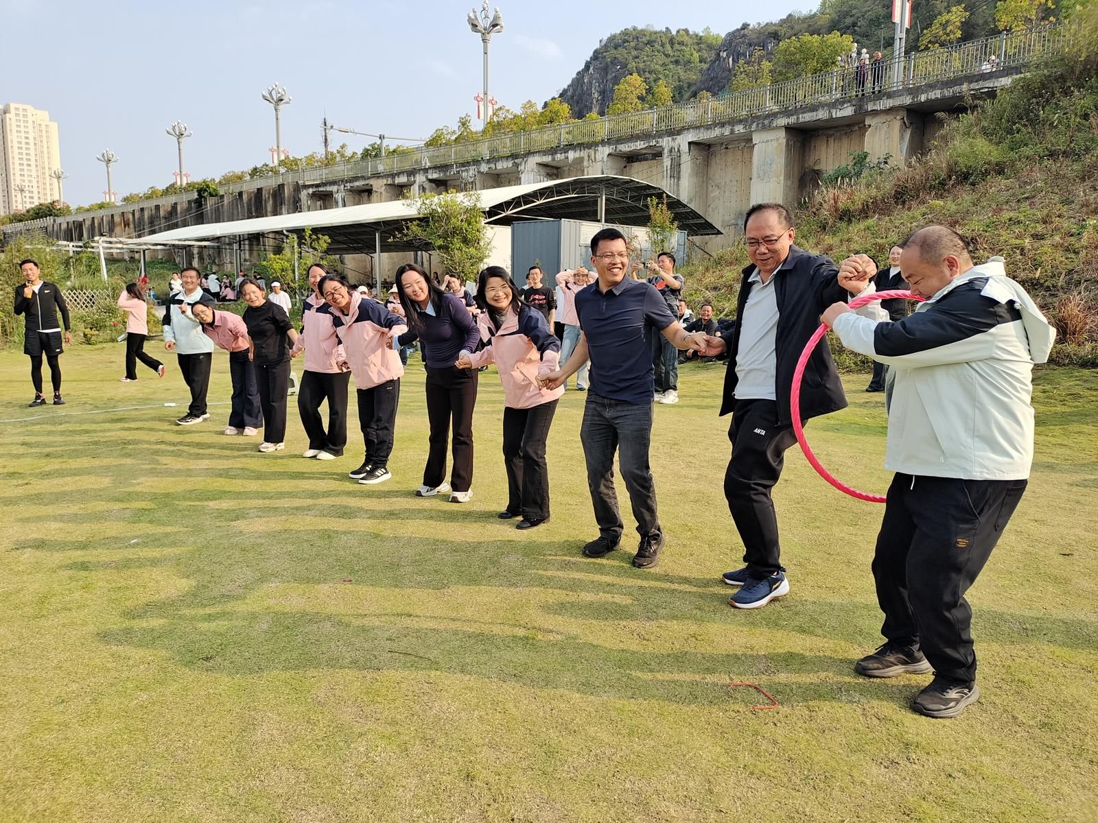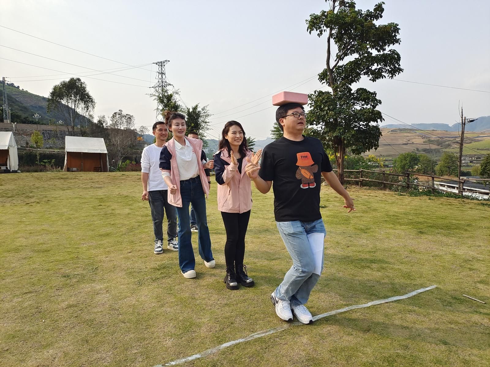 徒步来到终点,随即开启轻松愉快、趣味十足的游园活动。“杯水传情”“托球接力”等趣味游戏点燃了现场气氛,大家在欢声笑语中拉近了彼此的距离。游戏节目精彩纷呈,既有考验团队协作与反应速度的“一圈到底”,也有锻炼专注力与默契的“夹纸顶砖”,各组成员齐心协力、奋勇争先,现场掌声、笑声、加油声此起彼伏,充分展现了大家的智慧与活力。