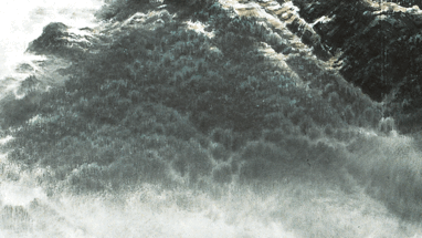 画作以积墨为主,积墨形成的茂密幽深的植被和偏锋皴擦形成的山岩峭壁,也恰恰形成笔墨浓淡枯湿的多样变化。
