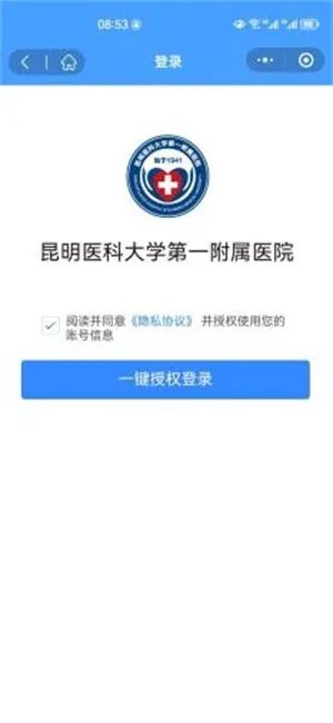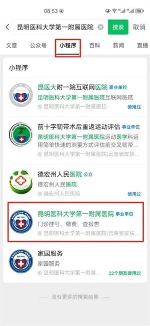 1.搜索【昆明医科大学第一附属医院】微信小程序