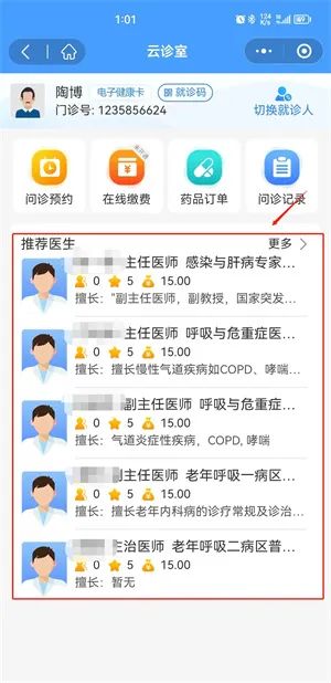 3.首页中点击【诊疗专区-线上发热门诊】,去到云诊室。