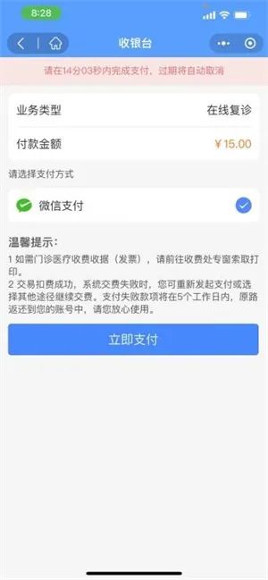 5.在填写病情主诉信息并确认预约信息,去到收银台。