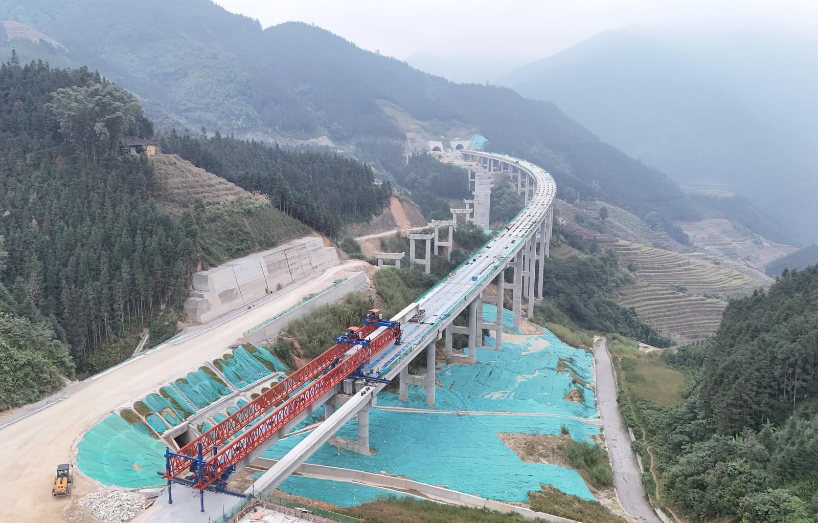 施工期间,团队还对废渣弃土、废水废料实施全流程规范化处置,统一运送至指定地点合规处理,最大限度保护周边林地生态环境,最终如期达成右幅贯通目标。
