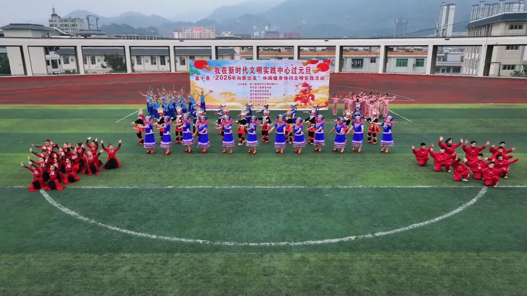 近日,富宁县多部门联合举办的“2026年向新出发”休闲健身快闪文明实践活动在县城区及乡镇同步开展。来自全县16支民间表演队的文艺表演者与市民齐聚一堂,以运动的活力与欢快的氛围迎接2026年,为社会注入了满满元气与暖意。