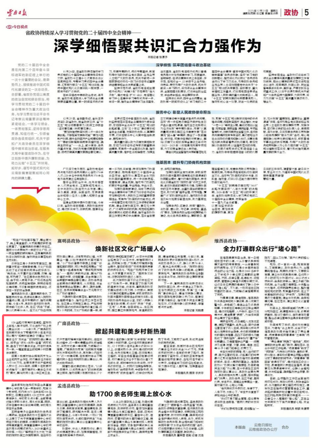 《云南日报》报道广南县政协:掀起共建和美乡村新热潮