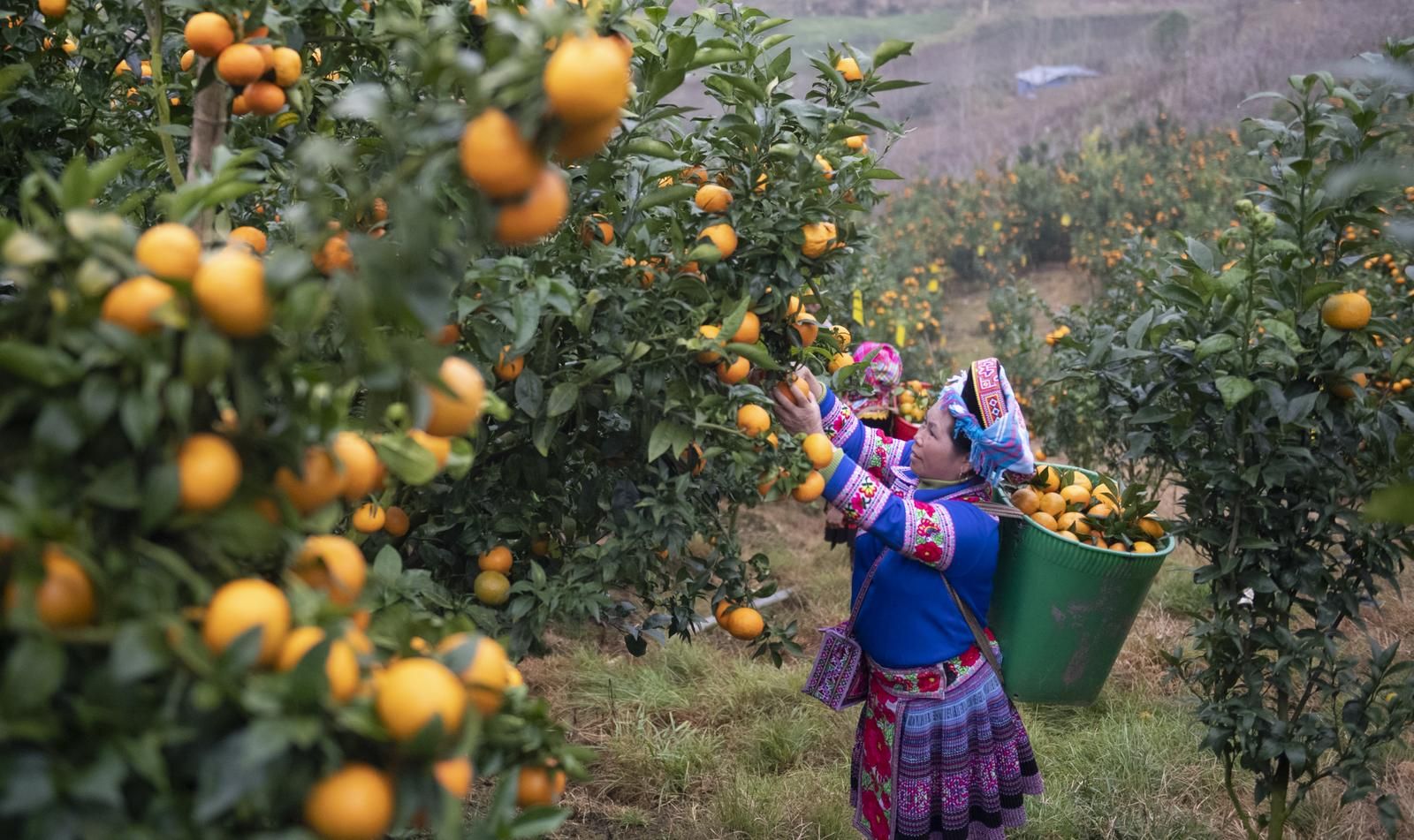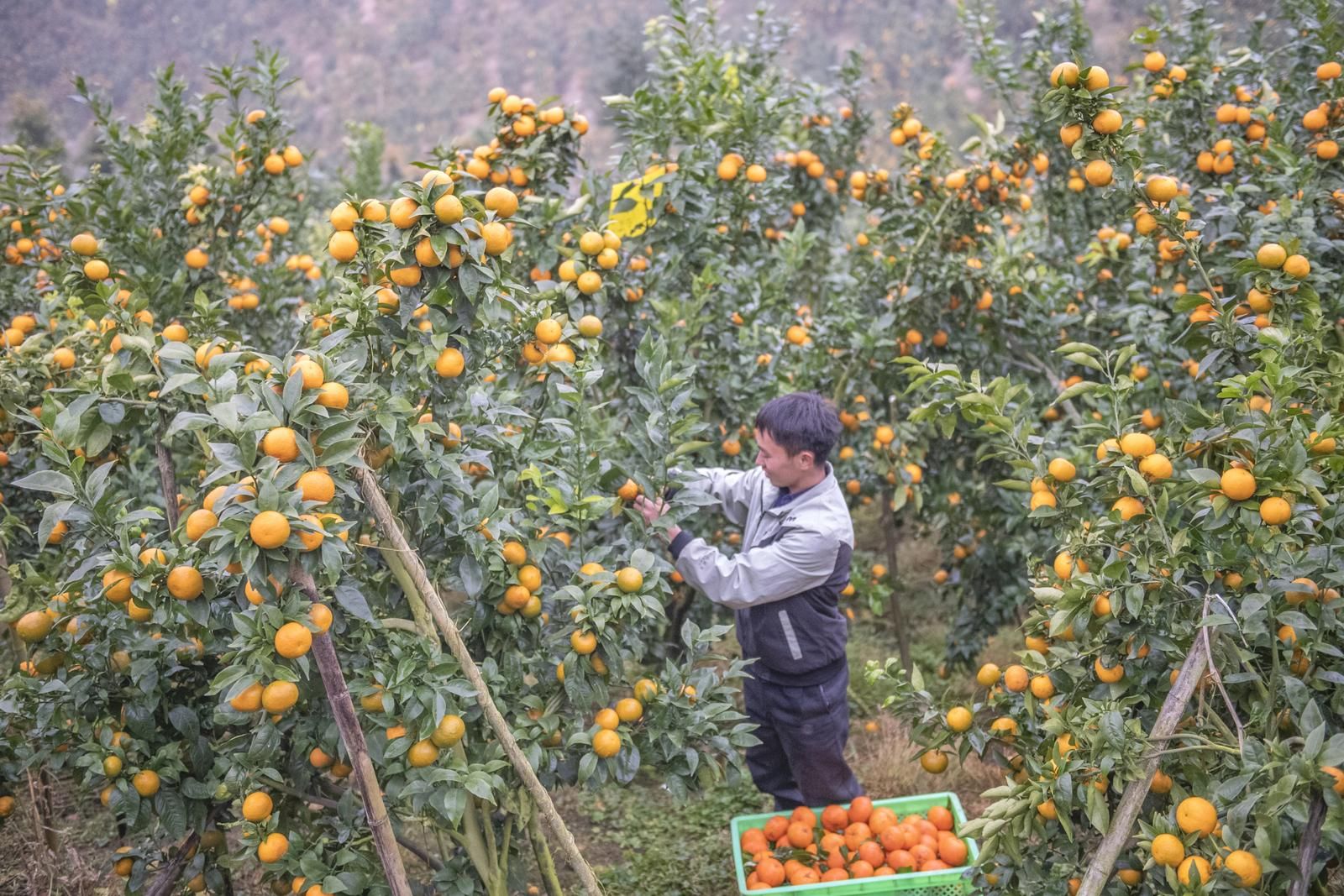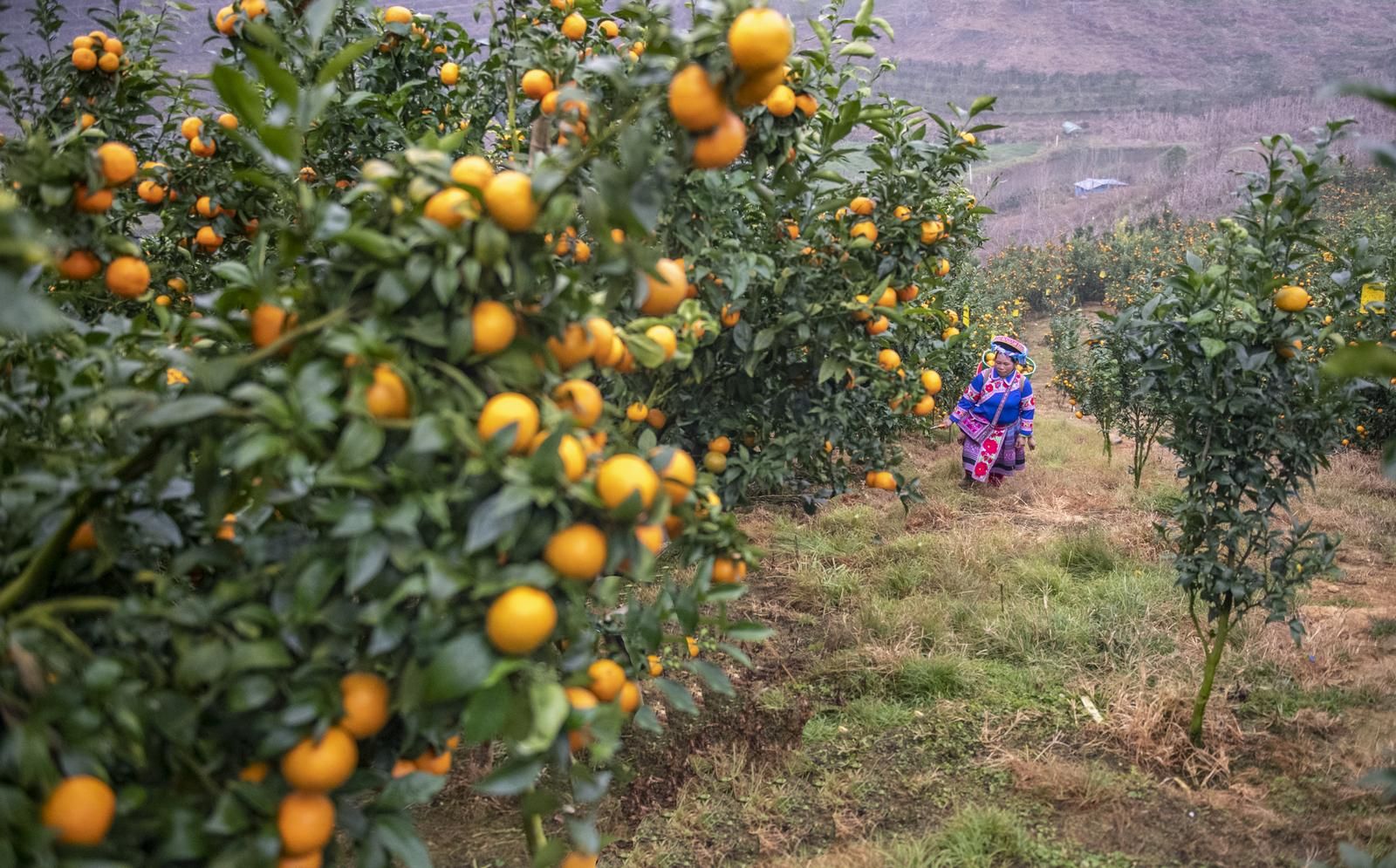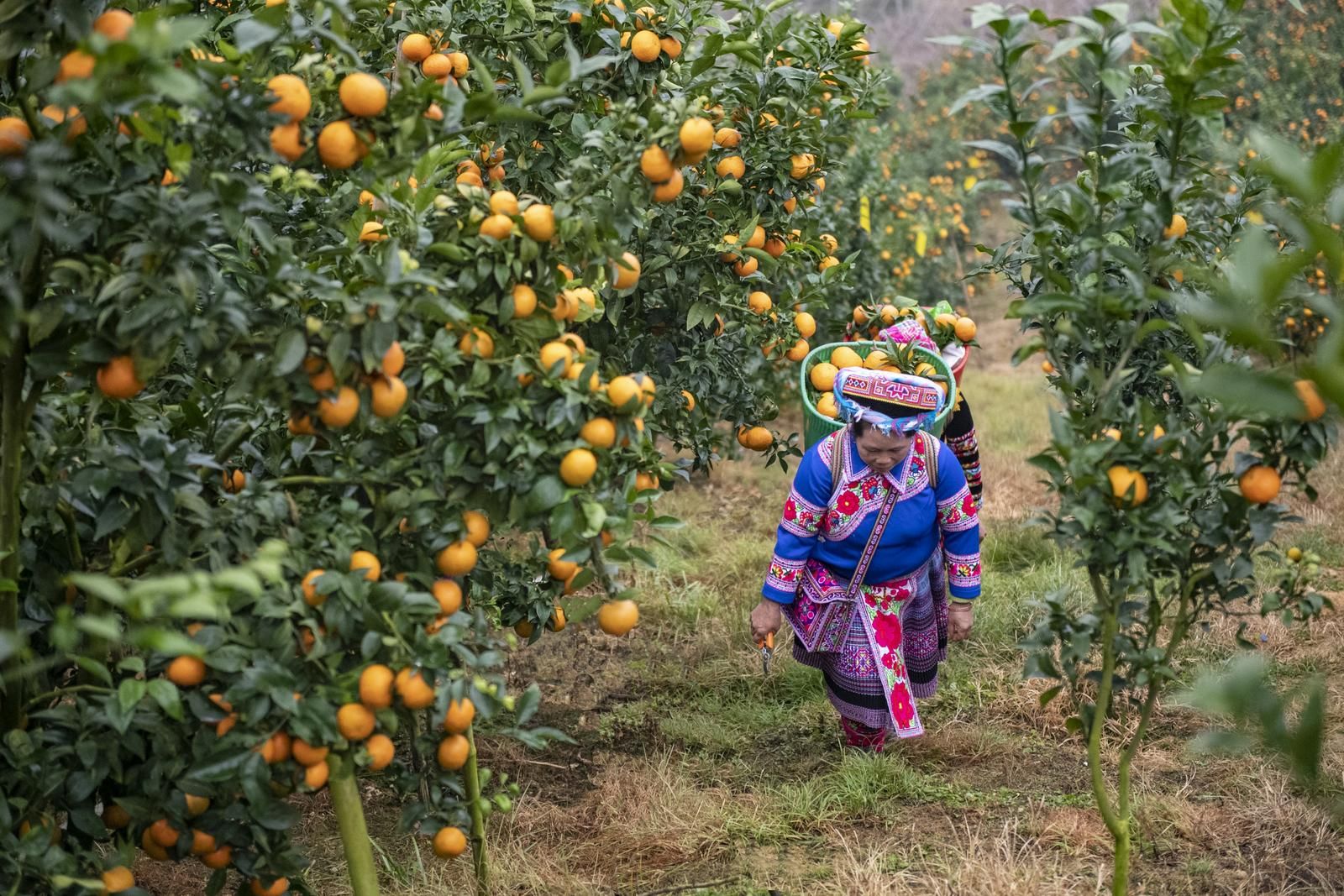 12月29日,果农在马关县都龙镇来龙村橘园基地采摘橘子。