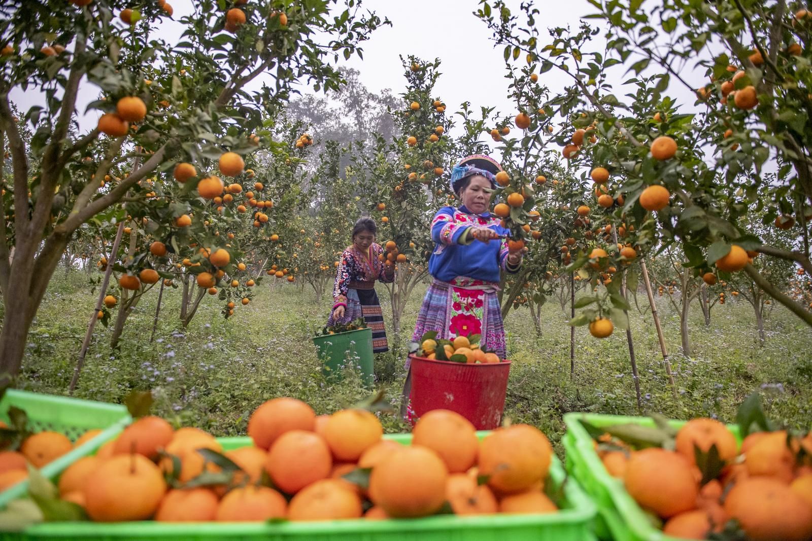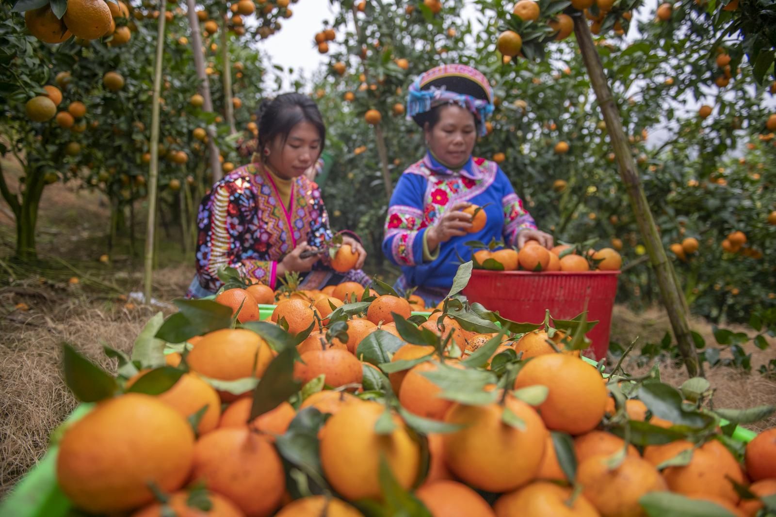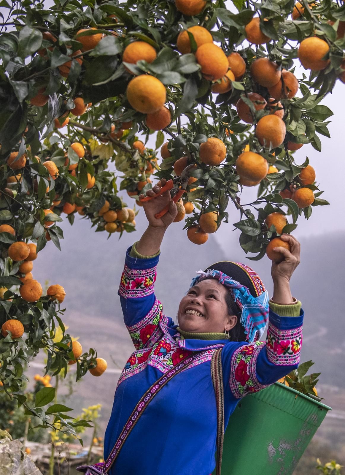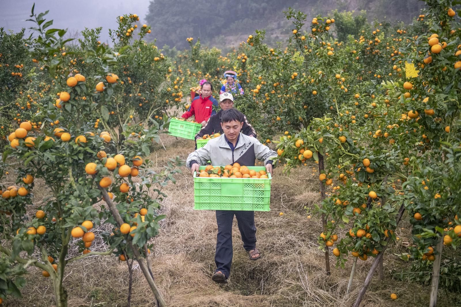 12月29日,果农在马关县都龙镇来龙村橘园基地采摘橘子。