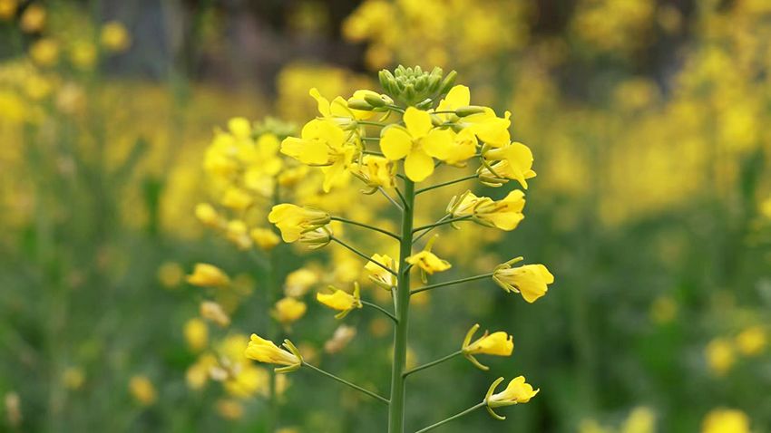 走进油菜花海,目之所及皆是耀眼的金黄。一朵朵油菜花小巧玲珑,四片花瓣舒展着身姿,在阳光的照耀下熠熠生辉,仿佛撒在田间地头的碎金。