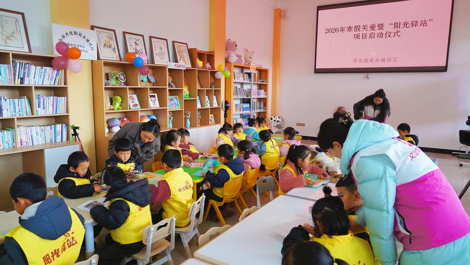 随后,来自永通社区的党员张金艳作为“爱心妈妈”代表上台分享帮扶心声。“作为‘爱心妈妈’,我们最开心的就是看到孩子们的笑脸。”张金艳说,“之前我们陪着孩子写作业、过节日,弥补他们亲情上的缺口。现在有了‘阳光驿站’这个固定阵地,我们的关爱也有了更坚实的依托,往后会常来这里,做孩子们最靠谱的‘家人’。”“阳光驿站”项目专职志愿者代表李元英也结合服务规划发言:“‘阳光驿站’的启动,为我们搭建了奉献爱心、服务社会的新平台。”李元英表示,“我们会秉持‘奉献、友爱、互助、进步’的志愿者精神,投入服务,为孩子们播撒希望,让驿站成为社区的温暖港湾。”现场,留守儿童监护人代表还宣读了《我是监护人》倡议,“感谢政府和社会对孩子的关心,‘阳光驿站’解决了我们假期看护的难题。”监护人代表李蓉说,“作为监护人,我们也会履行好责任,和驿站一起,让孩子在关爱中健康成长。”