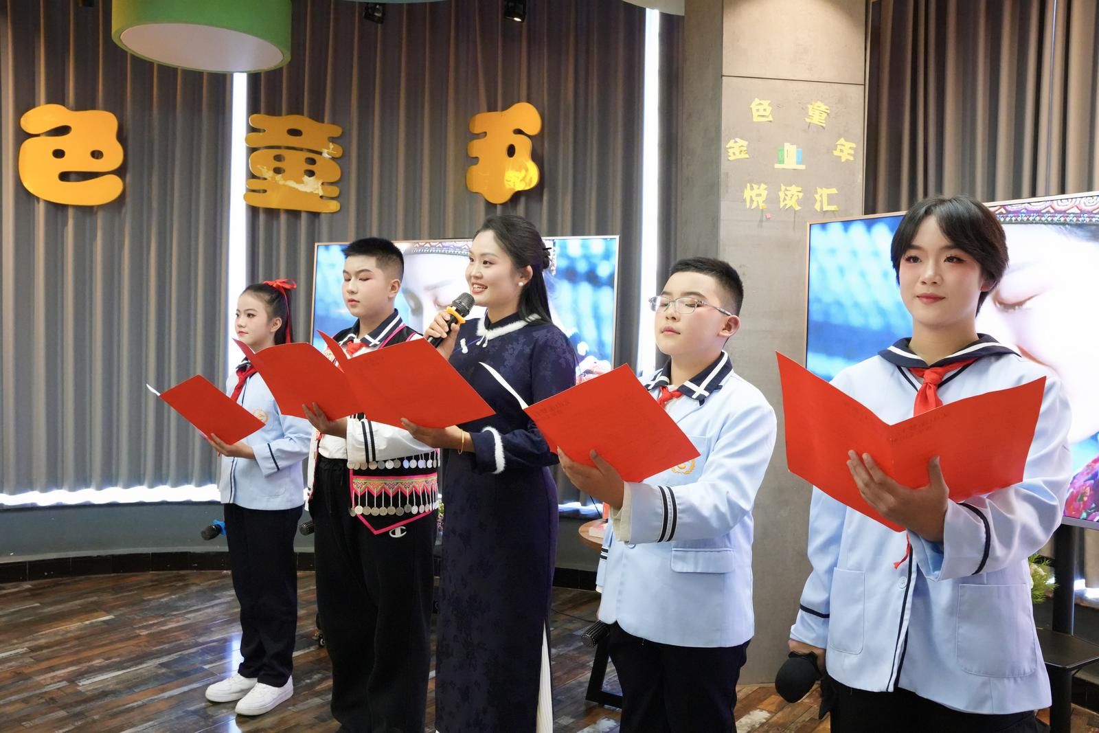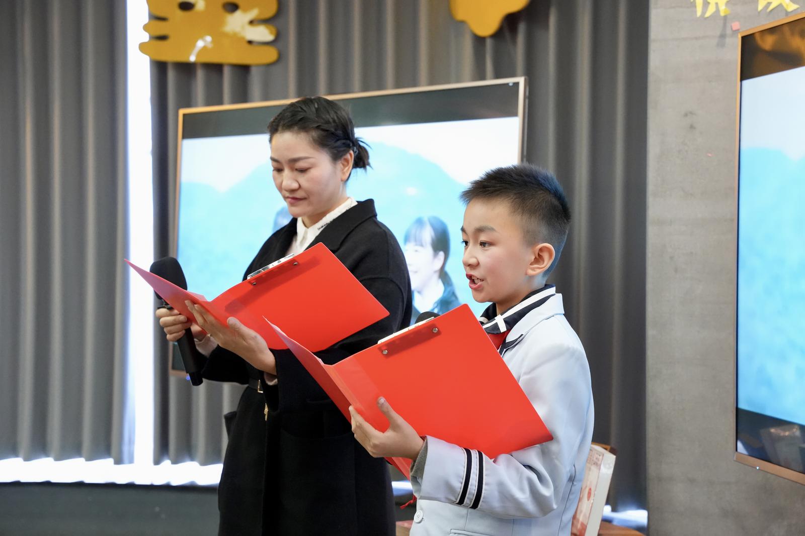 家庭是传承红色基因、培育家国情怀的重要阵地。紧接着,三组亲子家庭依次以配乐朗诵的形式,演绎了多篇致敬英雄、礼赞奋斗的作品,诠释了“饮水思源、致富思进”的时代内涵。父母与孩子并肩而立,声音相和,奋斗之志与家国情怀,在朗读声中自然生长、静静流淌。