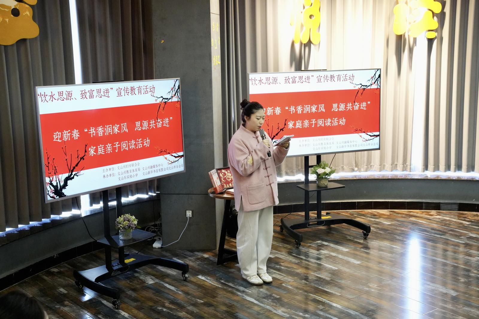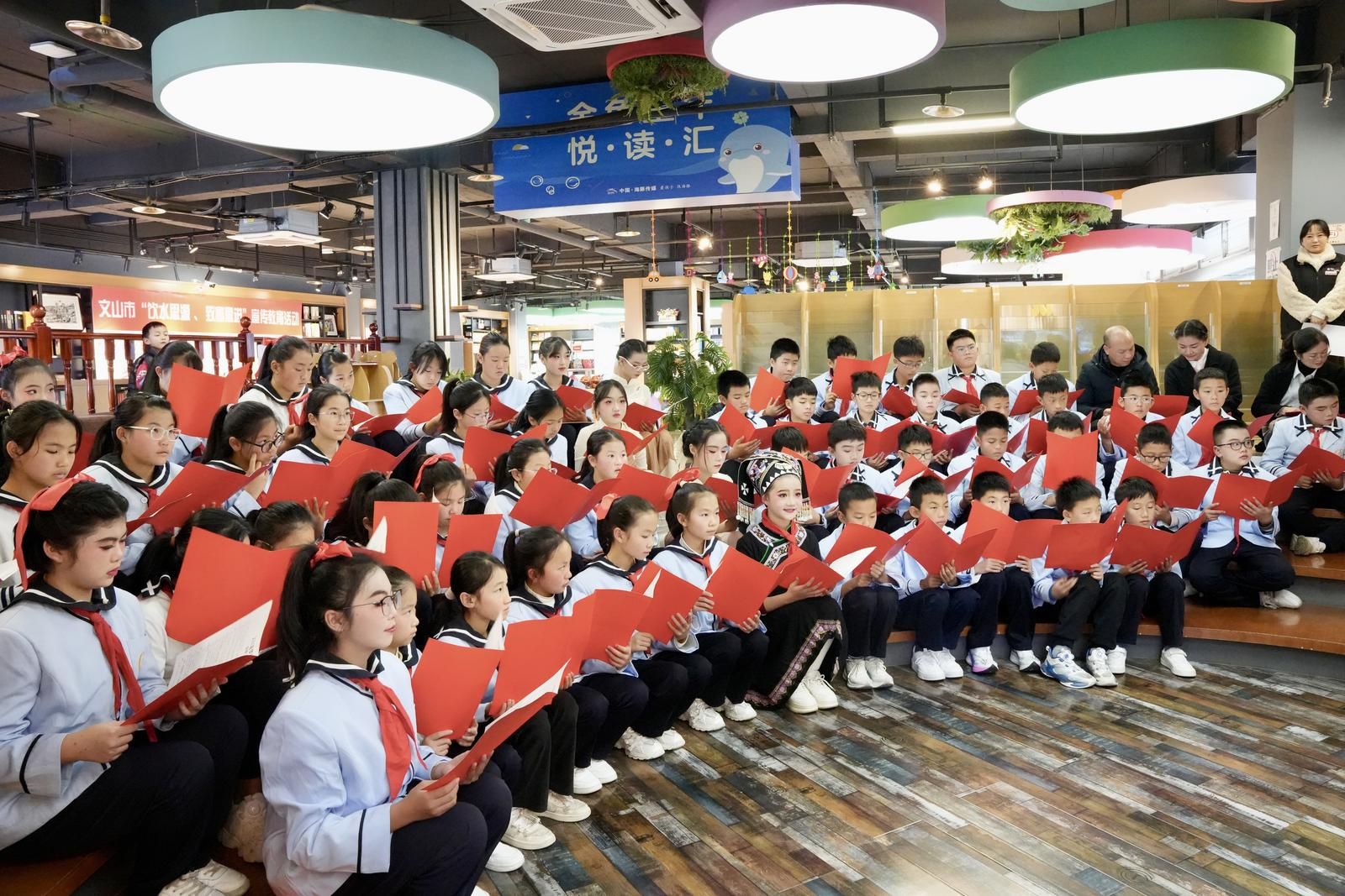 文网讯 为深入推动全民阅读,增进广大家庭对“饮水思源、致富思进”精神内涵的理解,1月9日下午,文山州妇联联合州融媒体中心、州教育体育局、文山新华书店及文山东实验小学,在新华书店四楼阅读空间开展“迎新春·书香润家风·思源共奋进”家庭亲子阅读活动。文山东实验小学六年级2班学生及部分家长代表共同参与,在书香中共迎新春、共话成长。