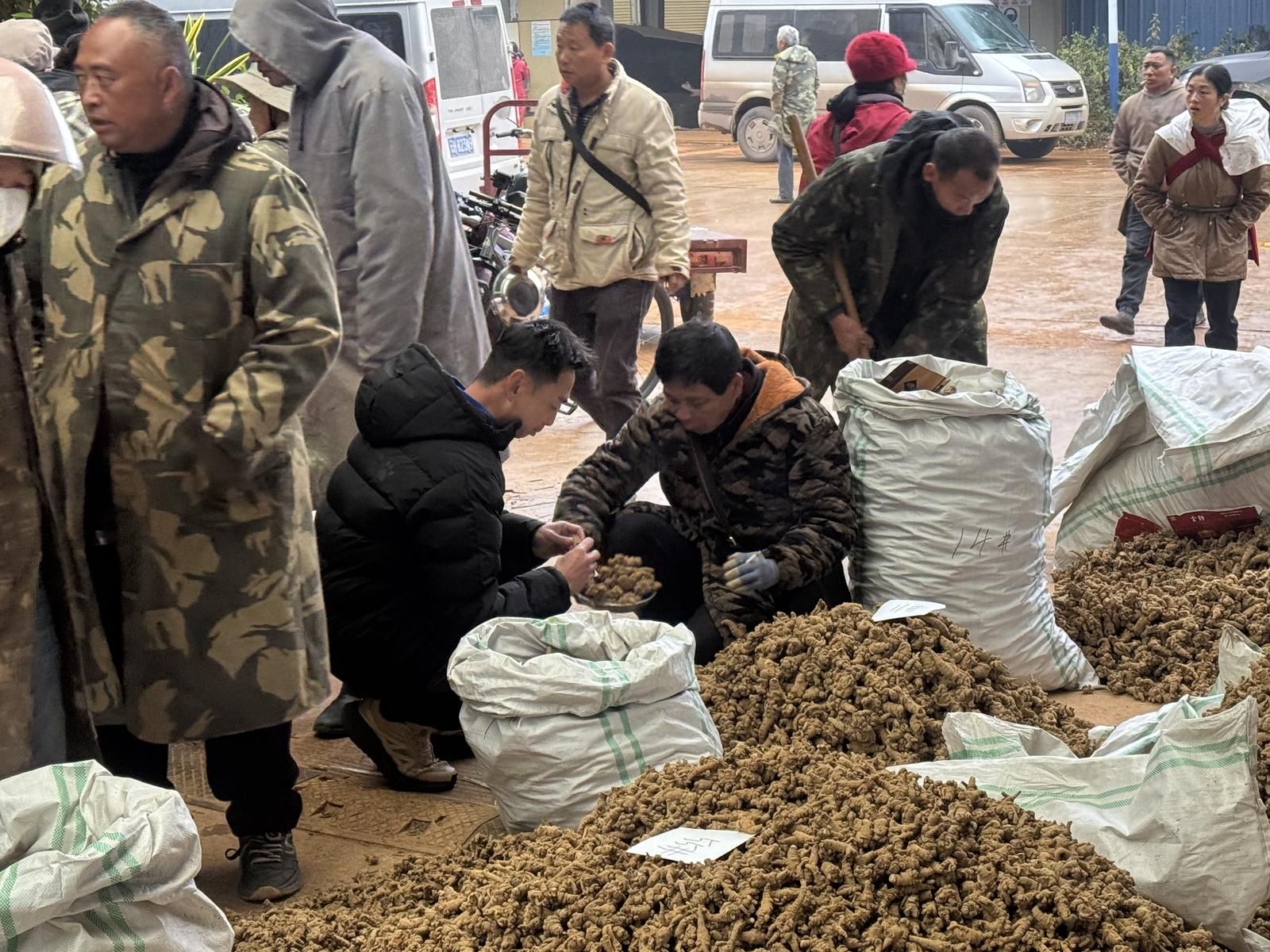 和许多三七贸易商一样,每天一大早,欧志春就会走进三七交易市场,挑选品质佳、水分少的干货。他不时捡起一头三七塞进嘴里,嘴巴上糊满黄泥巴,这是一种挑选三七的土方法。