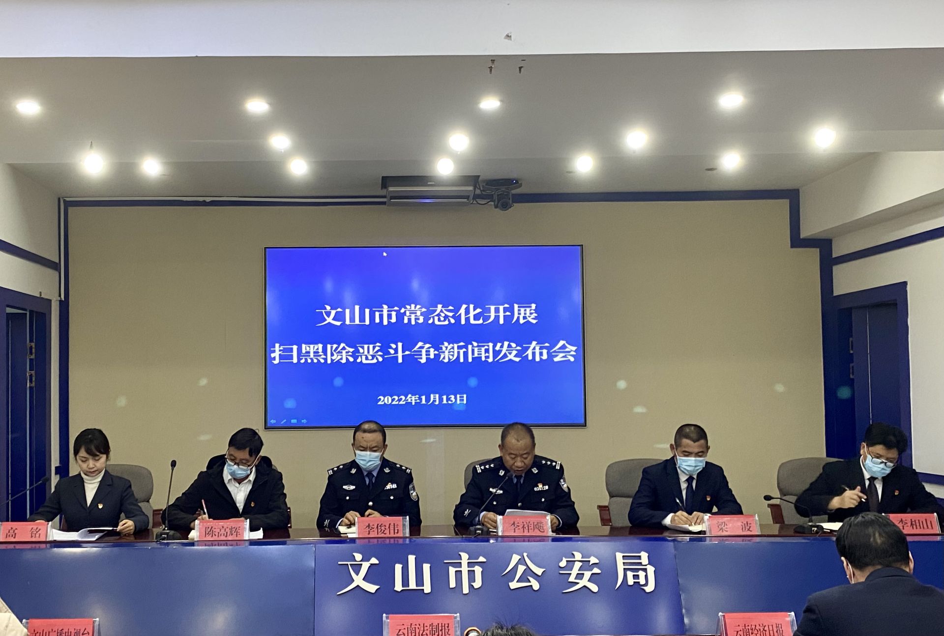 文网讯 1月13日下午,文山市常态化开展扫黑除恶斗争新闻发布会在文山市公安局举行。