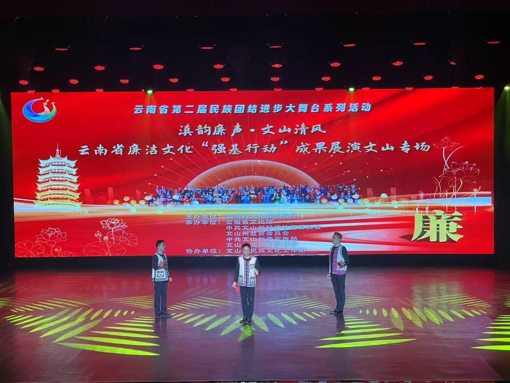 5月26日,由云南省文化和旅游厅主办的“滇韵廉声·文山清风——云南省廉洁文化‘强基行动’成果展演文山专场”在文山州文工团“艺术客厅”剧场举行。活动通过艺术形式向观众传递清风正气,州委编办工作人员蒙义貌在观看后表示,“沉浸式”的参与让人深受触动,廉洁文化以艺术形式直抵人心,进一步强化了规矩意识和底线思维。